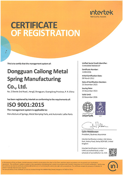 Dongguan Cailong Metal Spring Mfg. Co., Ltd.